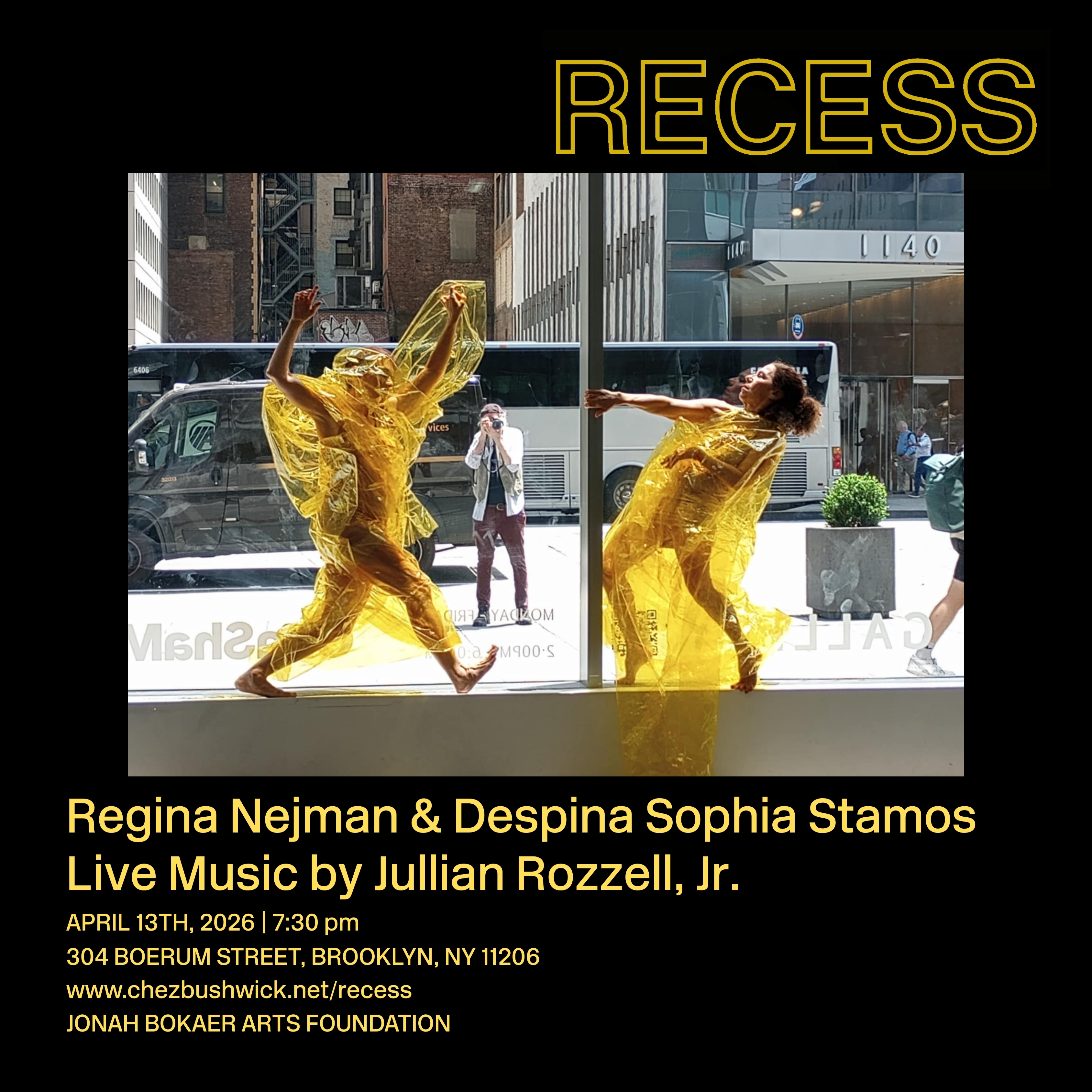 . April 13th, 2026 at 7:30pm Neighbors / Plastic at RECESS at Chezbushwick Jonah Bokaer Arts Foundation